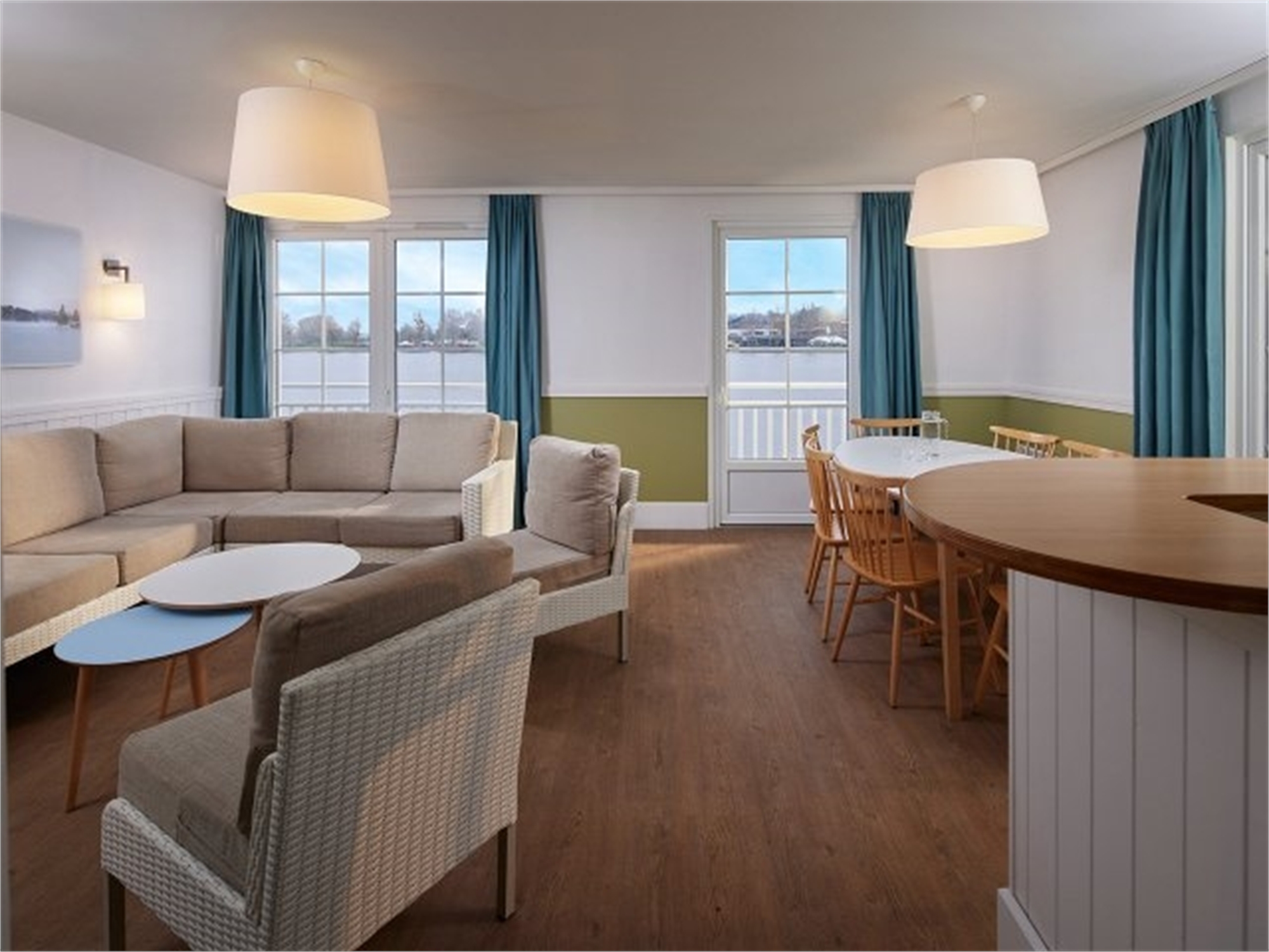 Asseyez-vous sur votre terrasse privée couverte et profitez de la vue panoramique sur le lac. Tous les cottages Lakeside sont situés au bord de l'eau. À l'intérieur aussi vous avez une belle vue, grâce aux grandes fenêtres !