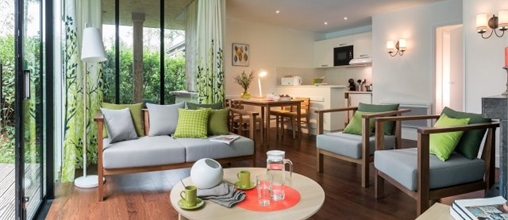 Le nom dit tout : en raison de son architecture particulière, le cottage Pagode a une forme orientale. Grâce à ses grandes fenêtres, qui sont aussi larges que la pièce et vont du sol au plafond, le cottage est ouvert et lumineux, vous offrant une vue magnifique sur la nature environnante.