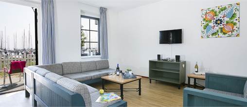 Cette villa familiale pour 11 personnes offre une vue sur le port de plaisance. Il y a une salle de séjour spacieuse avec un coin repas, une cuisine ouverte avec lave-vaisselle et des toilettes séparées. Les portes-fenêtres vous mèneront à la terrasse meublée. Au 1er étage, vous trouverez 3 chambres avec des lits avec des sommiers à ressorts et 1 salle de bains avec baignoire. Au 2ème étage, il y a une autre chambre et une salle de bains avec douche. Vous pourrez profiter d’une connexion Wifi gratuite.