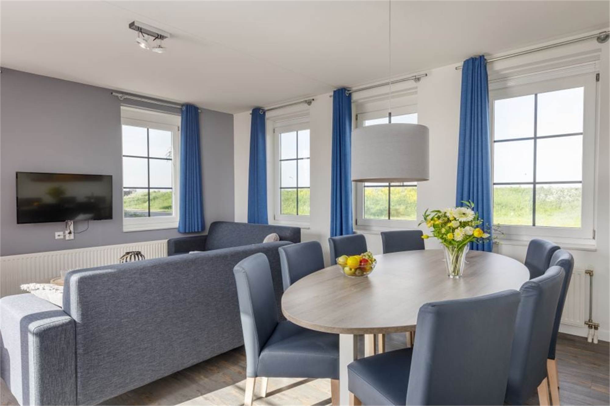 Bungalow mitoyen rénové pour 8 personnes. Dans la salle de séjour, vous trouverez un coin salon et la cuisine ouverte dispose d'un lave-vaisselle et d'une machine à café. Vous trouverez une chambre avec des lits avec des sommiers à ressorts et des toilettes séparées dans le couloir. Les portes-fenêtres vous mèneront à la terrasse meublée. À l'étage, vous trouverez 2 chambres avec des lits avec des sommiers à ressorts et une salle de bains avec douche et baignoire. Dans le hall il y a des toilettes séparées. Vous pourrez profiter d’une connexion Wifi gratuite.