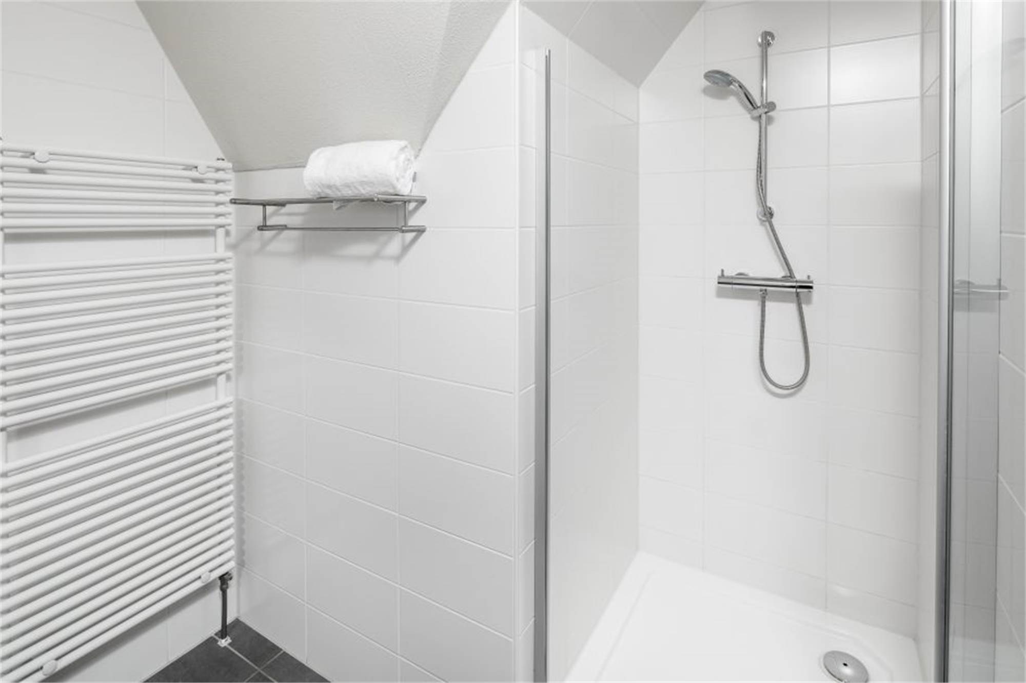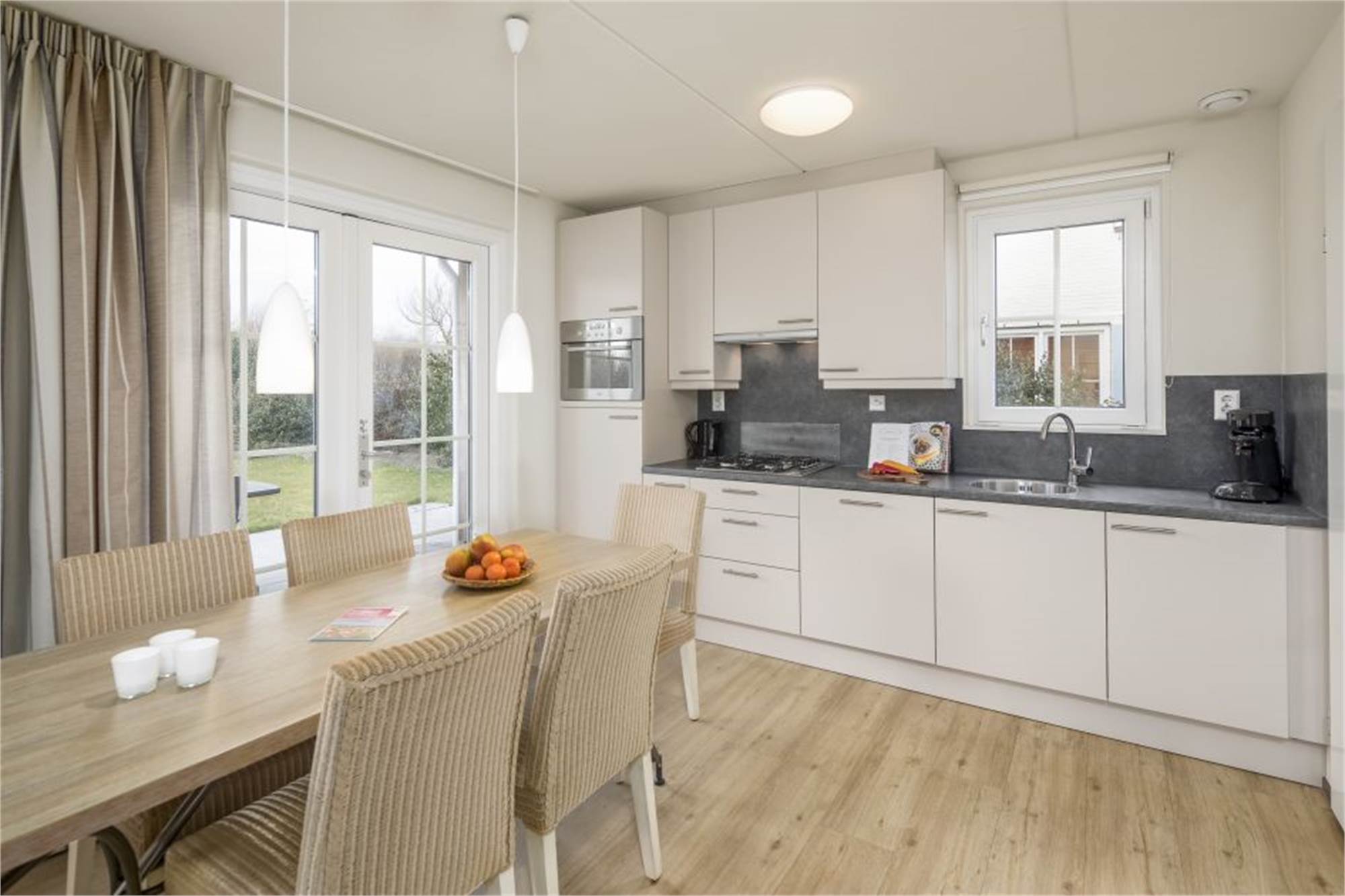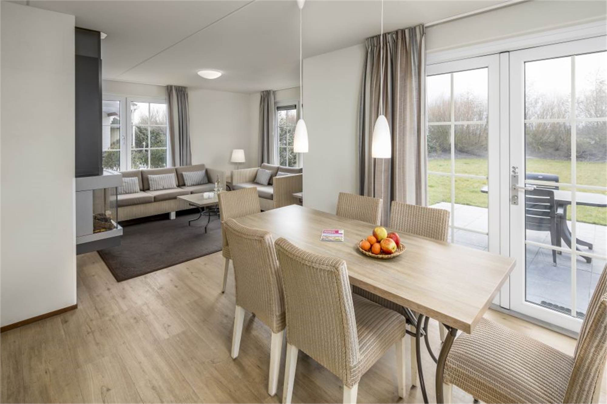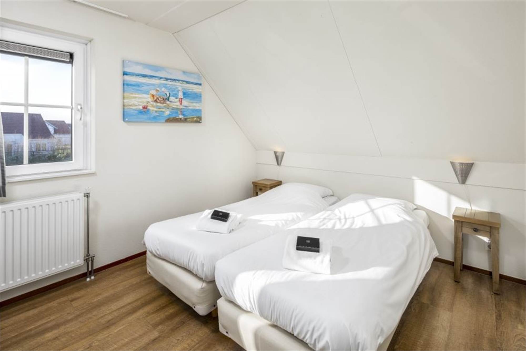 Cette luxueuse villa individuelle peut accueillir 6 personnes. Via le couloir, vous atteignez le salon lumineux avec chauffage au sol et portes françaises menant à la terrasse chauffée. La villa dispose d'une cuisine entièrement équipée avec lave-vaisselle, micro-ondes combiné et réfrigérateur-congélateur. Il y a aussi deux toilettes séparées et un débarras à l'extérieur où vous pourrez ranger les vélos. Au rez-de-chaussée se trouve 1 chambre avec TV et une salle de bains attenante. À l'étage, vous pourrez trouver deux chambres et deux salles de bains avec douche.