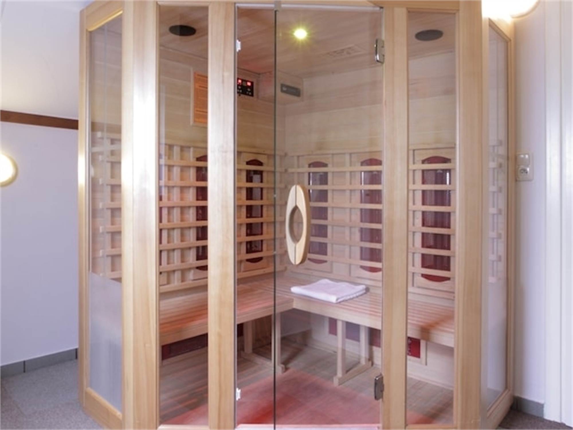 1 avec sèche-cheveux, double lavabo, sauna infrarouge séparé, douche dans la baignoire1 toilette séparée Cuisine