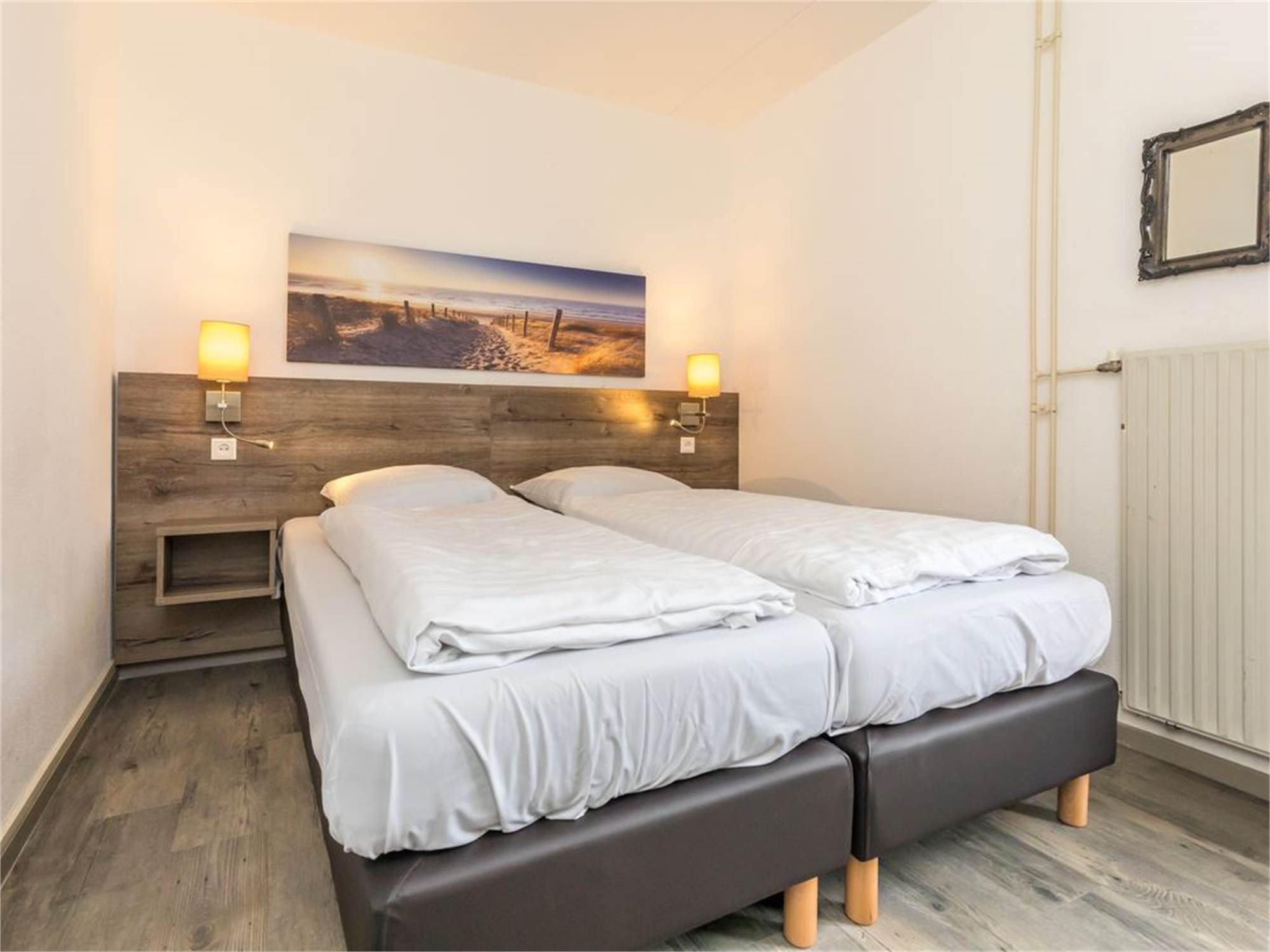 Chambre à coucher avec deux lits 1 personne et couvre-matelas softtoper