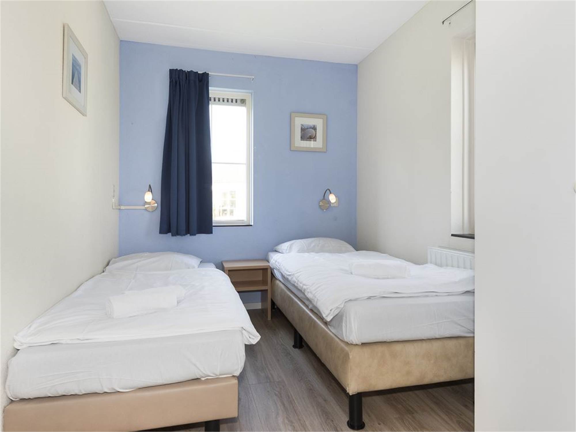 Chambre à coucher avec deux lits 1 personne et couvre-matelas softtoper au premier étage