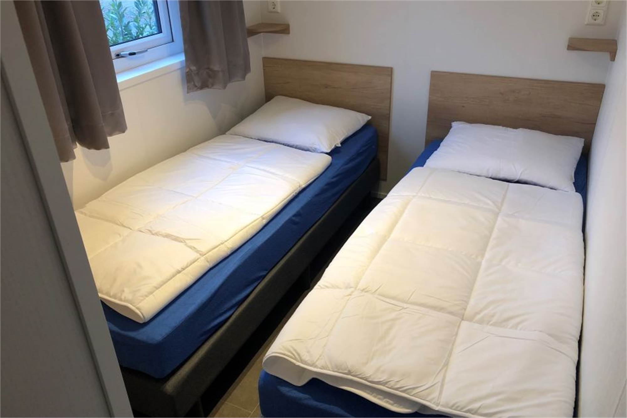 Ce lodge indépendant pour 6 personnes est situé au rez-de-chaussée et dispose d'une salle de séjour avec coin salon et smart TV. Dans la cuisine, vous trouverez un lave-vaisselle, un micro-ondes combiné et un réfrigérateur avec congélateur. Il y a à la fois une machine à café à dosettes et une machine à café avec filtre. Il y a 3 chambres à coucher au total, dont 2 avec 2 lits simples et 1 avec 1 lit superposé. La salle de bain dispose d'une douche à l'italienne et de toilettes séparées. Le lodge dispose d'un jardin avec une véranda et une terrasse couverte avec mobilier de jardin. Il y a un parking pour 1 voiture près du lodge et vous pouvez utiliser le wifi gratuitement.