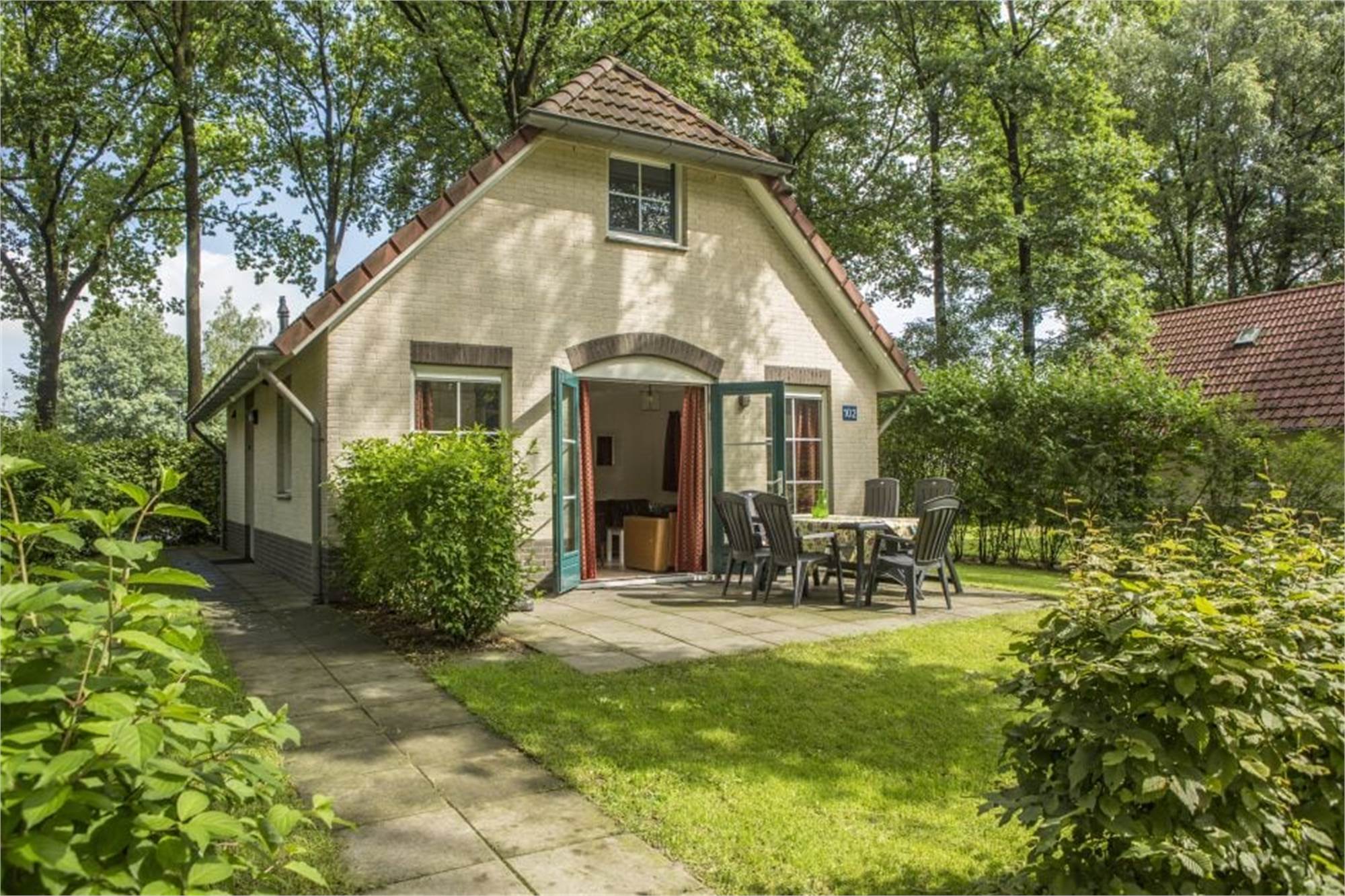 Tous les bungalows sont individuels et disposent de grandes portes ouvrantes qui donnent sur la terrasse et un grand jardin avec salon de jardin et parasol. Un parking pour une voiture est disponible à côté du bungalow.