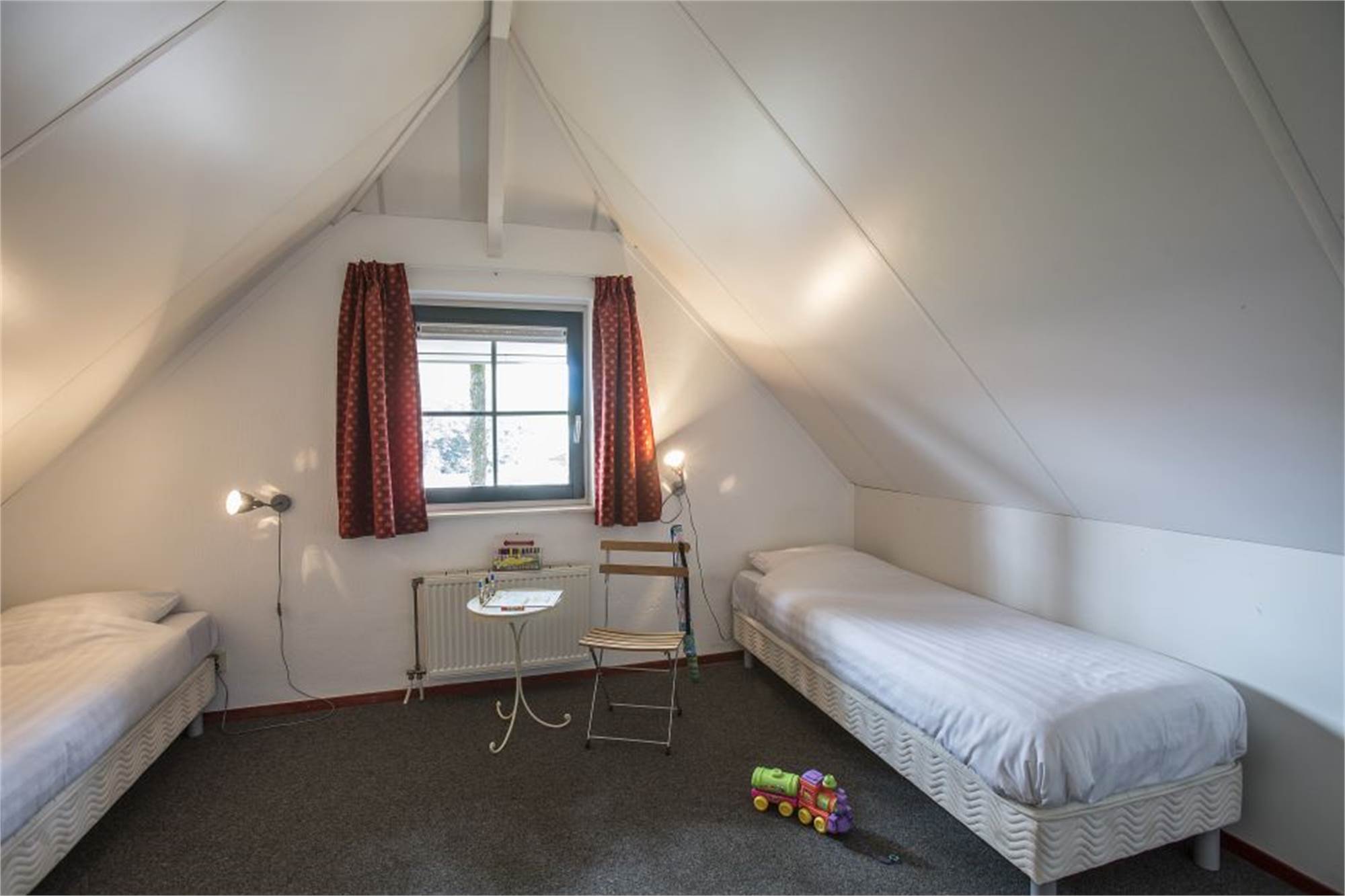 1er étage : deux chambres avec deux lits simples avec sommiers à ressorts. Sauna infrarouge biplace.