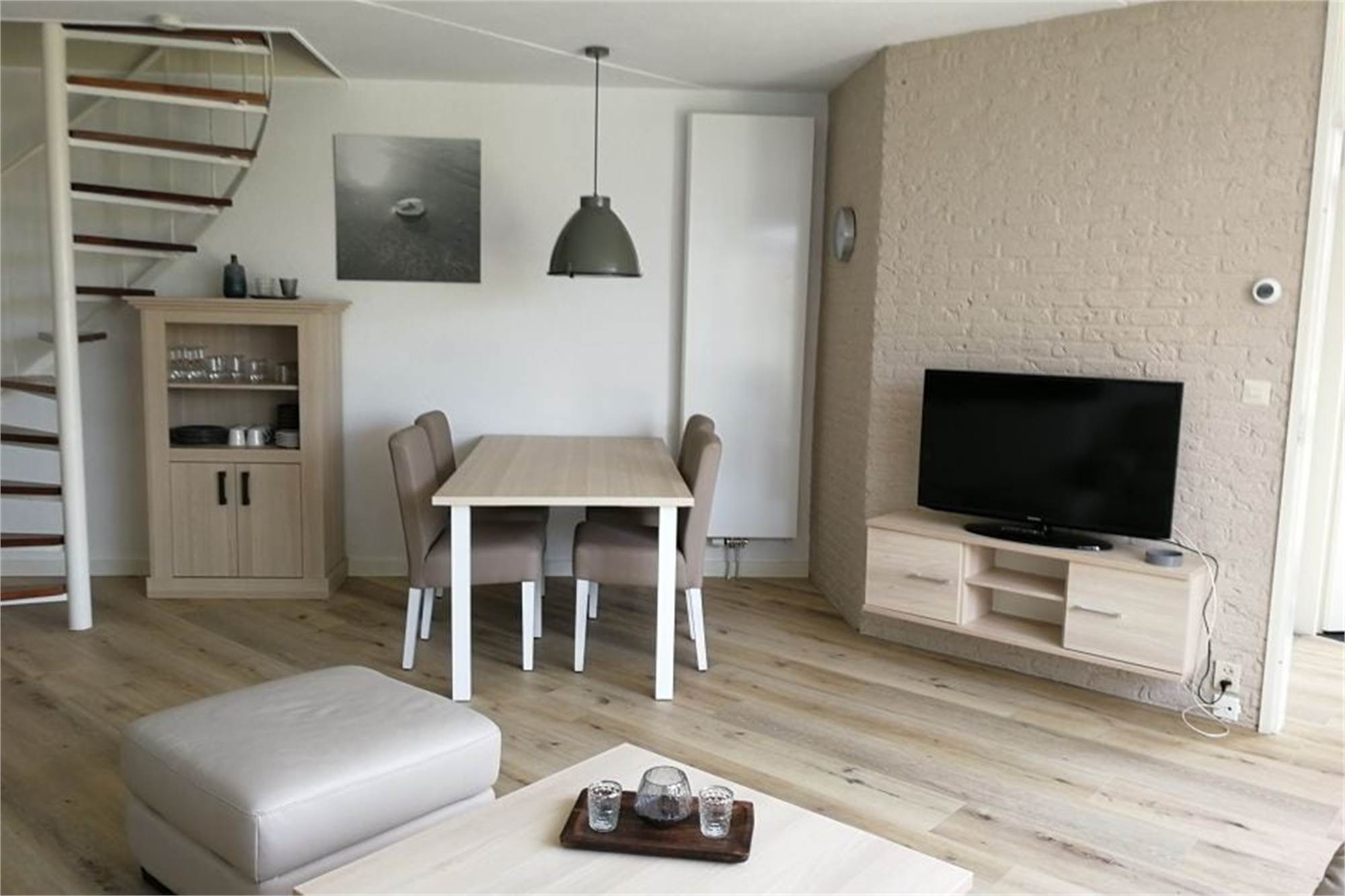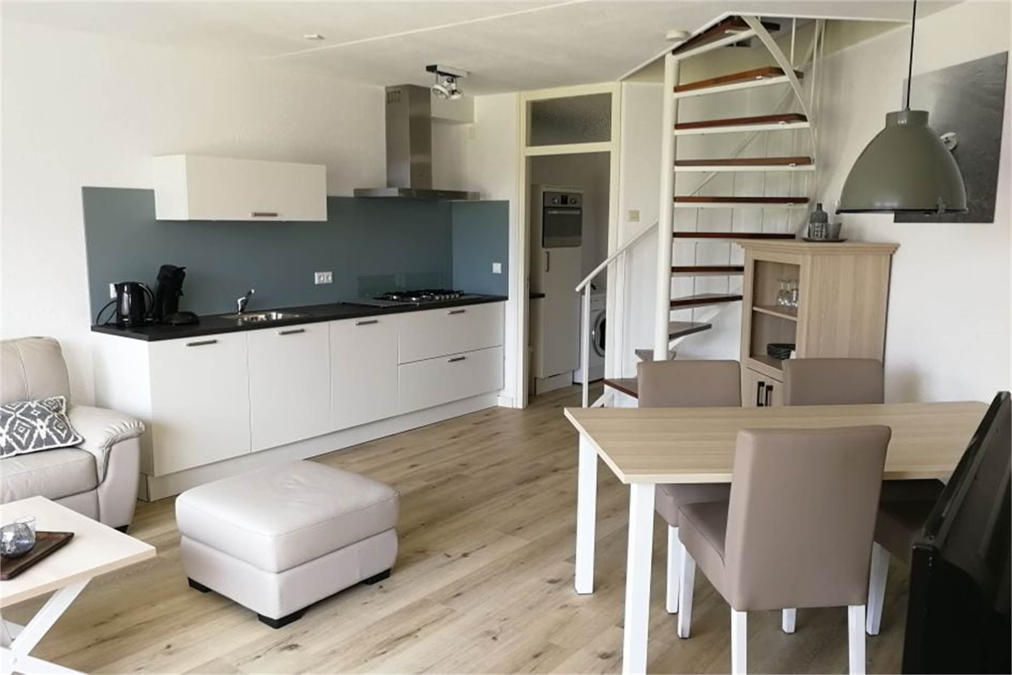 Ce bungalow redessiné est adapté pour 4 personnes. Le salon dispose d'une salle à manger séparée, d'un four micro-ondes et d'une machine à dosettes de café. Il y a 2 chambres, chacune un lit double avec sommier tapissier et il y a une salle de bain avec douche. Le bungalow dispose également d'un lave-linge et d'une terrasse meublée.