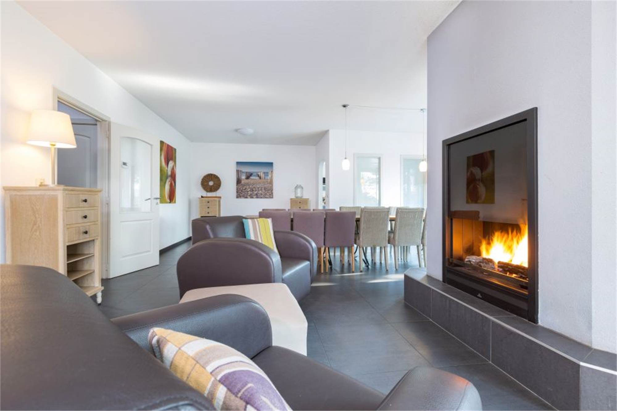Cette villa familiale indépendante et adaptée aux enfants peut accueillir 14 personnes. La salle de séjour est équipée d'une cheminée d'ambiance et d'une smart-TV, et la cuisine compte notamment un four, une cafetière à dosettes et un lave-vaisselle. Il y a 7 chambres à coucher, dont 2 au rez-de-chaussée, toutes dotées de 2 lits simples. À l'étage inférieurs et supérieur il y a 2 salles de bain avec W.-C. et douche à l’italienne ou baignoire. Il y a aussi un W.-C. séparé. La villa compte aussi une machine à laver et un sèche-linge, un jardin avec terrasse meublée et 6 chaises longues. La villa dispose de 4 places de stationnement. L'accès au Wifi est gratuit.