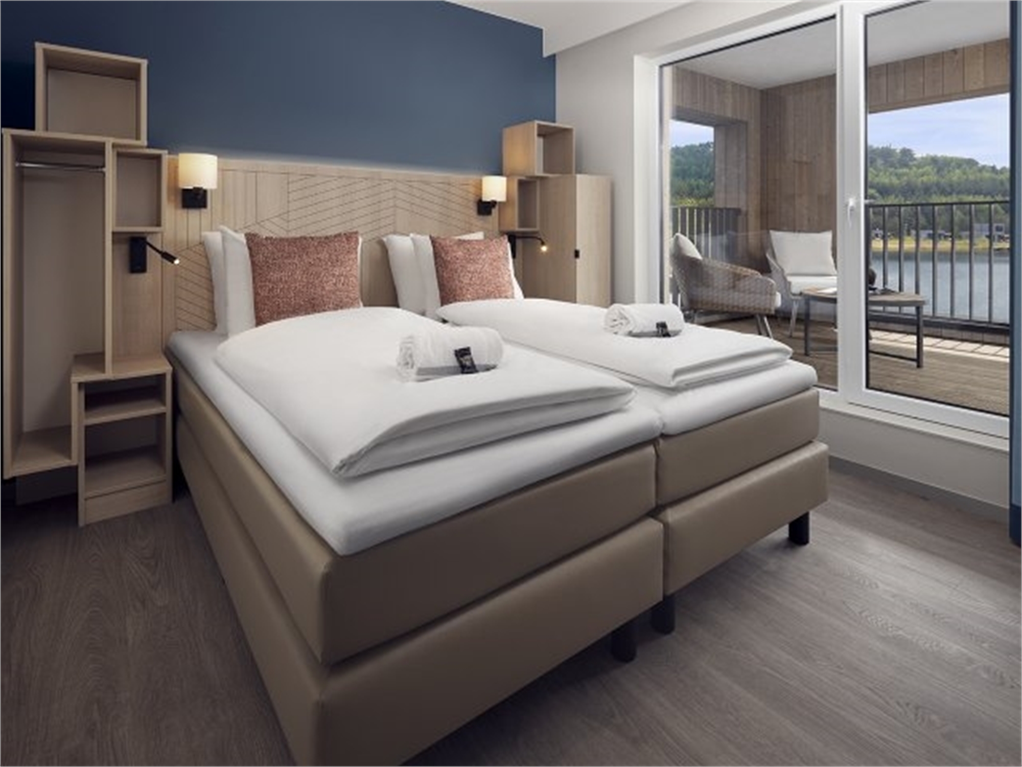 Asseyez-vous sur votre terrasse privée couverte et profitez de la vue panoramique sur le lac. Tous les cottages Lakeside sont situés au bord de l'eau. À l'intérieur aussi vous avez une belle vue, grâce aux grandes fenêtres !