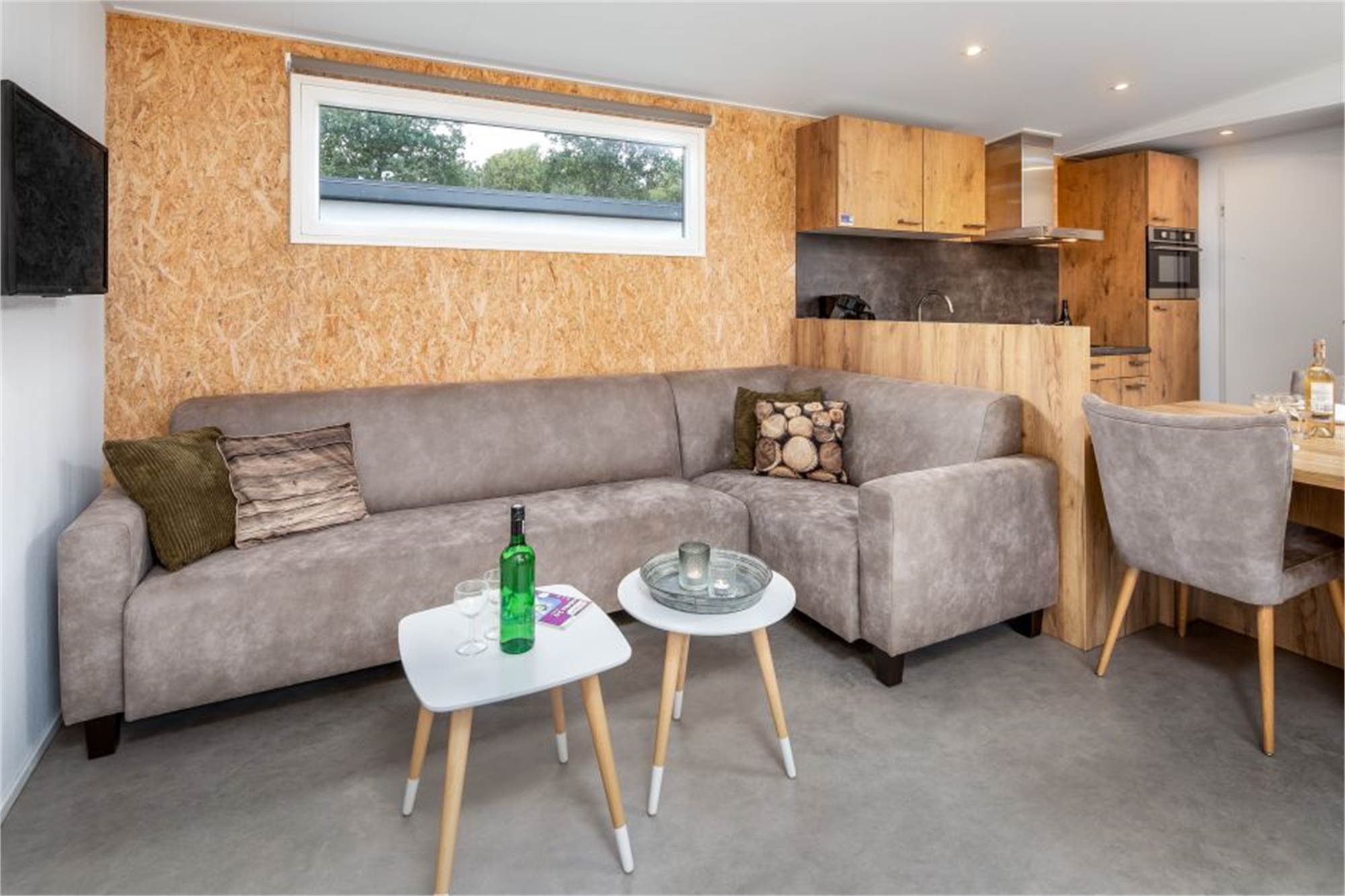 Ce chalet indépendant est adapté pour 6 personnes. Le salon dispose d'un coin repas séparé et dans la cuisine, vous trouverez un lave-vaisselle, un four micro-ondes et une machine à café. En outre, il y a 3 chambres, dont 2 avec 2 lits simples avec des sommiers à ressorts et 1 chambre avec lit superposés. Il y a aussi une salle de bains avec douche et des toilettes. Le chalet est également équipé d'une terrasse meublée et vous pourrez profiter d'une connexion Wifi gratuite.