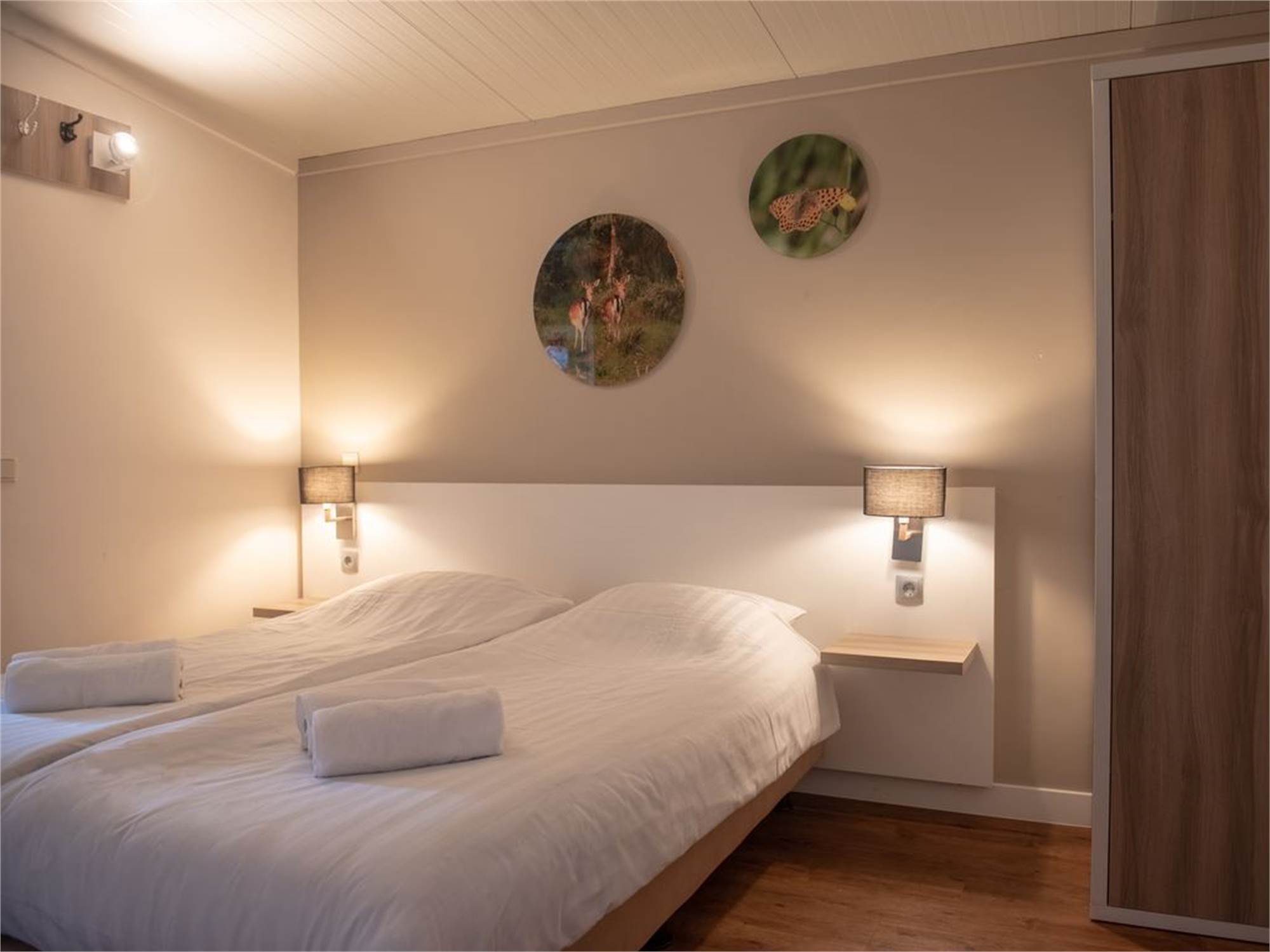 Chambre à coucher avec deux lits boxspring pour 1 personne et surmatelas