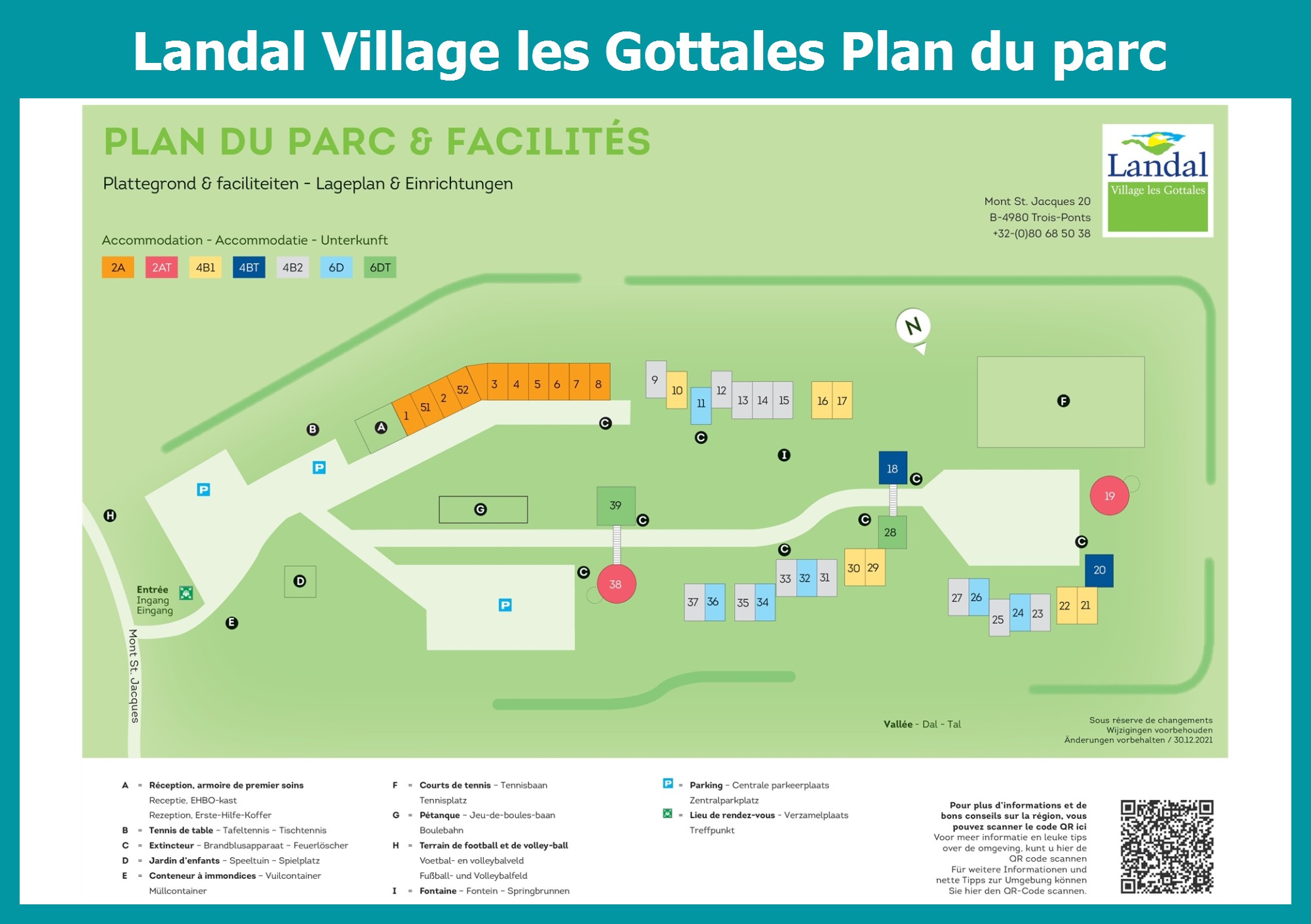 Le plan actuel du Landal Village les Gottales avec tous les hébergements et installations, est aussi disponible en pdf.