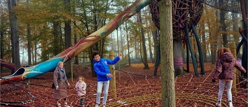 Vos enfants oseront-ils s'aventurer dans la Forêt des légendes ? Nids suspendus, chemins mystérieux, cachettes... Une aire de jeux surprenante à ne pas louper !