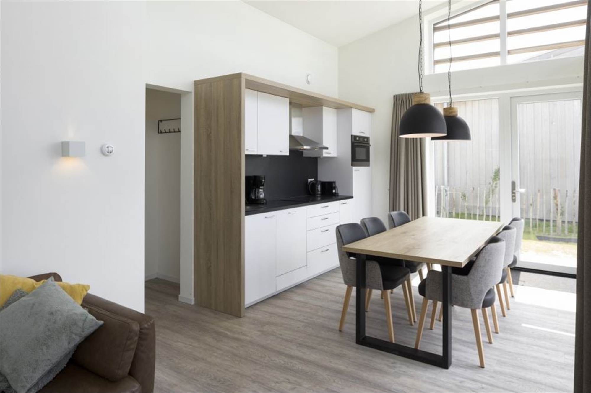 Ce bungalow indépendant peut accueillir 6 personnes. Dans la salle de séjour, vous trouverez un coin salon avec une Smart TV et la cuisine est équipée d'un lave-vaisselle, d'un réfrigérateur avec un compartiment de congélation, d'une cafetière et d'un four micro-ondes combiné. Au rez-de-chaussée, il y a 2 chambres munies chacune de 2 lits d'une personne. Il y a aussi un espace ouvert en mezzanine, assez bas de plafond, muni de 2 lits d'une personne. Cet espace est accessible depuis la salle de séjour, par un escalier assez raide. Le bungalow dispose de 2 salles de bains avec douche à l'italienne. Le chauffage au sol est disponible dans les salles de bains et dans le salon. Vous pourrez profiter d’une connexion Wi-Fi gratuite.